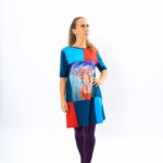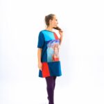 Оригинална дизайнерска дамска туника с авторски принт. Принтът е на картина от серията „Под вода“и е върху ликра, останалата част от дрехата е от памучно трико с еластан.Подходяща за сезон – пролет, лято.