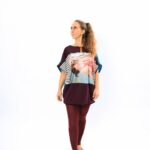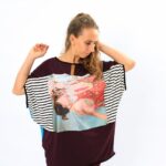 Оригинална дизайнерска дамска туника с авторски принт. Принтът е на картина от серията „Под вода“и е върху ликра, останалата част от дрехата е от памучно трико с еластан .Подходяща за сезон – пролет, лято.