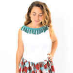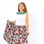 Роклята е с голям набор в кръста, което й придава тази бухналост. Декоративният ширит допълва роклята по интересен начин. Подходяща за вскакви поводи.